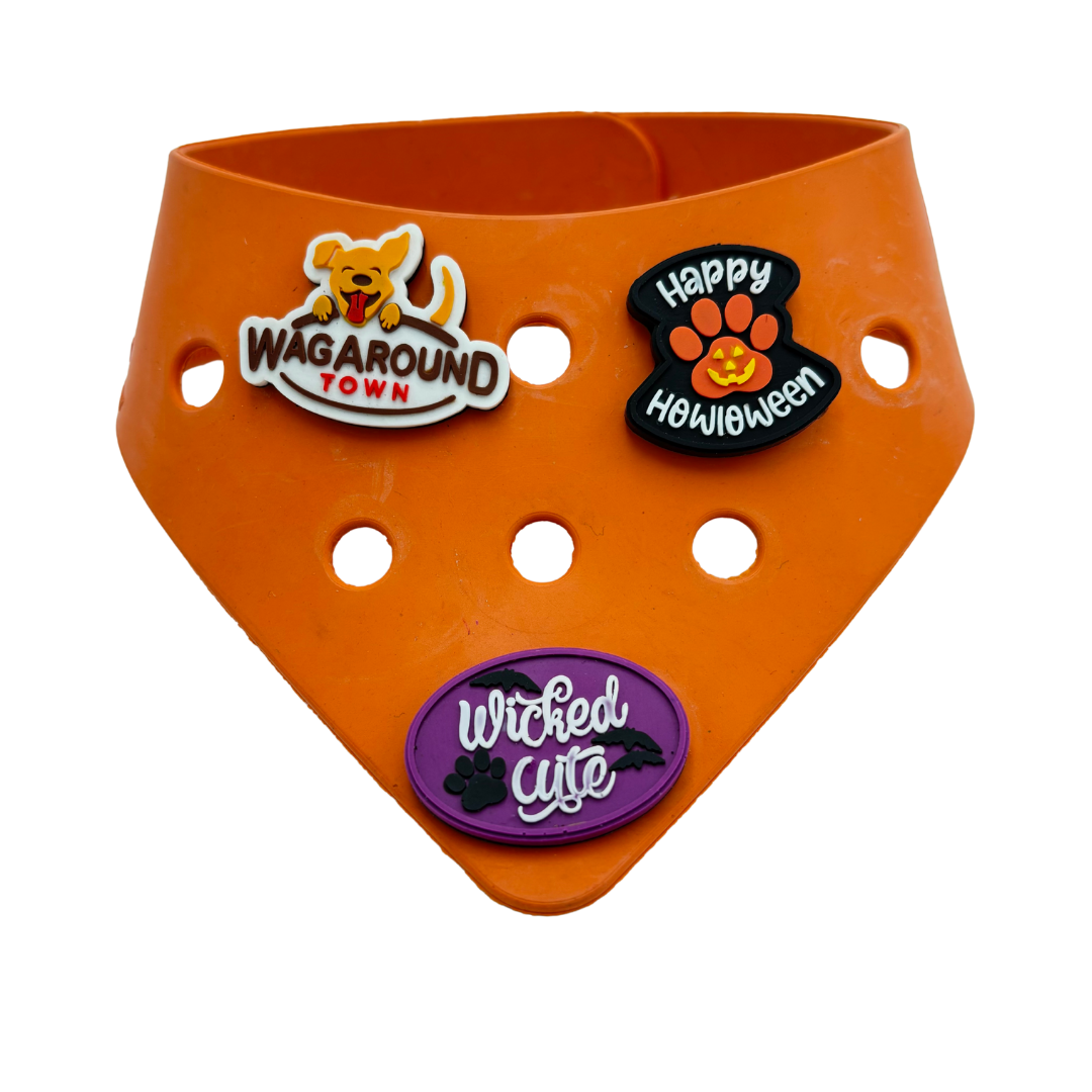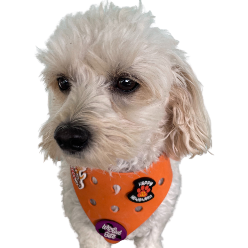 Introducing Charmdana: Dog Bandana! Canine fashion elevated! With vibrant colors and eye-catching charms.