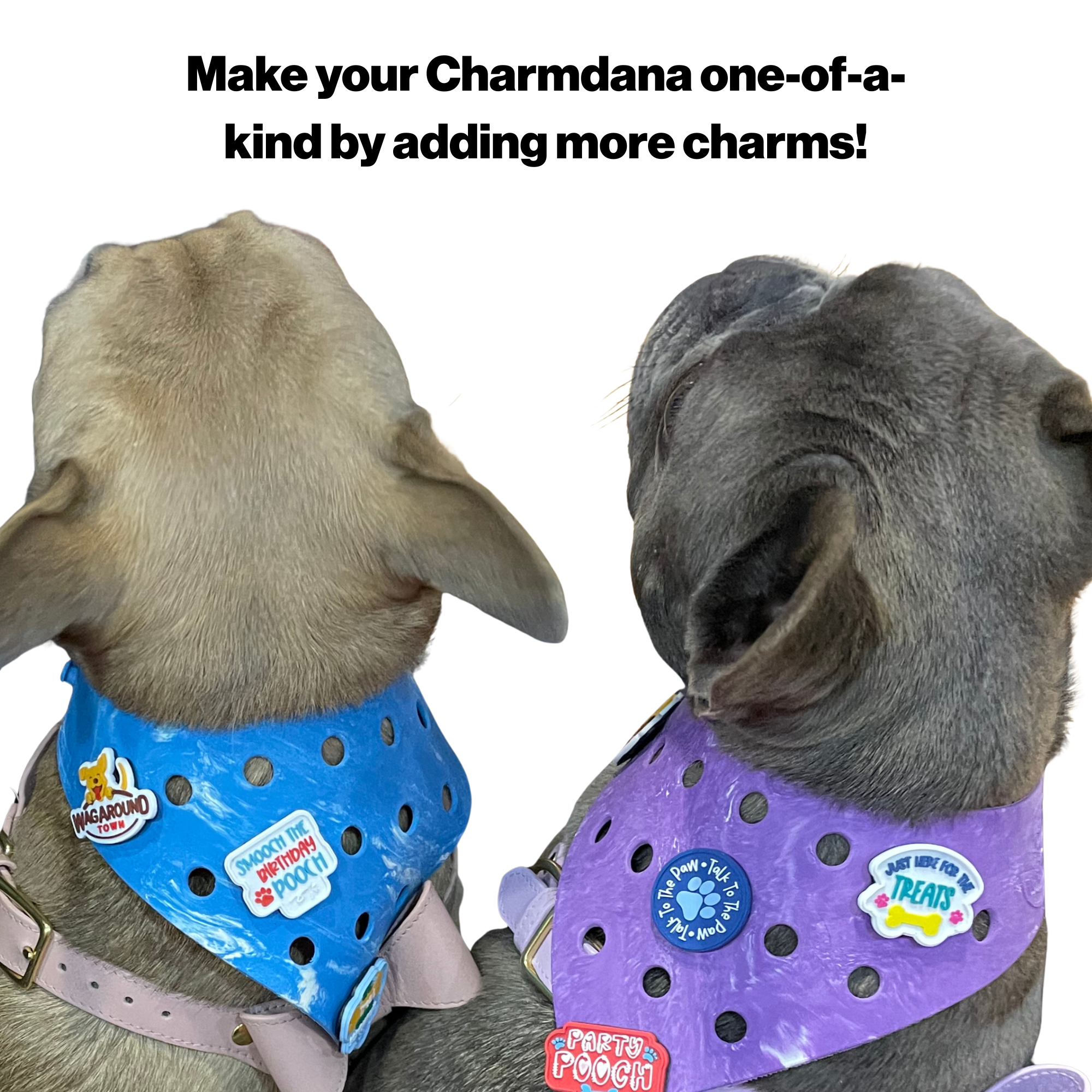 Presentamos Charmdana: la moda canina elevada. Con colores vibrantes y dijes llamativos, este pañuelo llama la atención y provoca sonrisas donde quiera que vaya su ingenioso cachorro. Adjunte los caprichosos amuletos Wag-witty para obtener una dosis extra de personalidad y encanto. ¡Lleva el estilo canino a un nivel completamente nuevo!